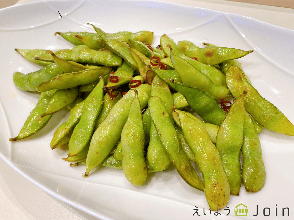 そんな枝豆をペペロンチーノ風に!ニンニクの香りと鷹の爪のピリッと感が食欲をそそります。