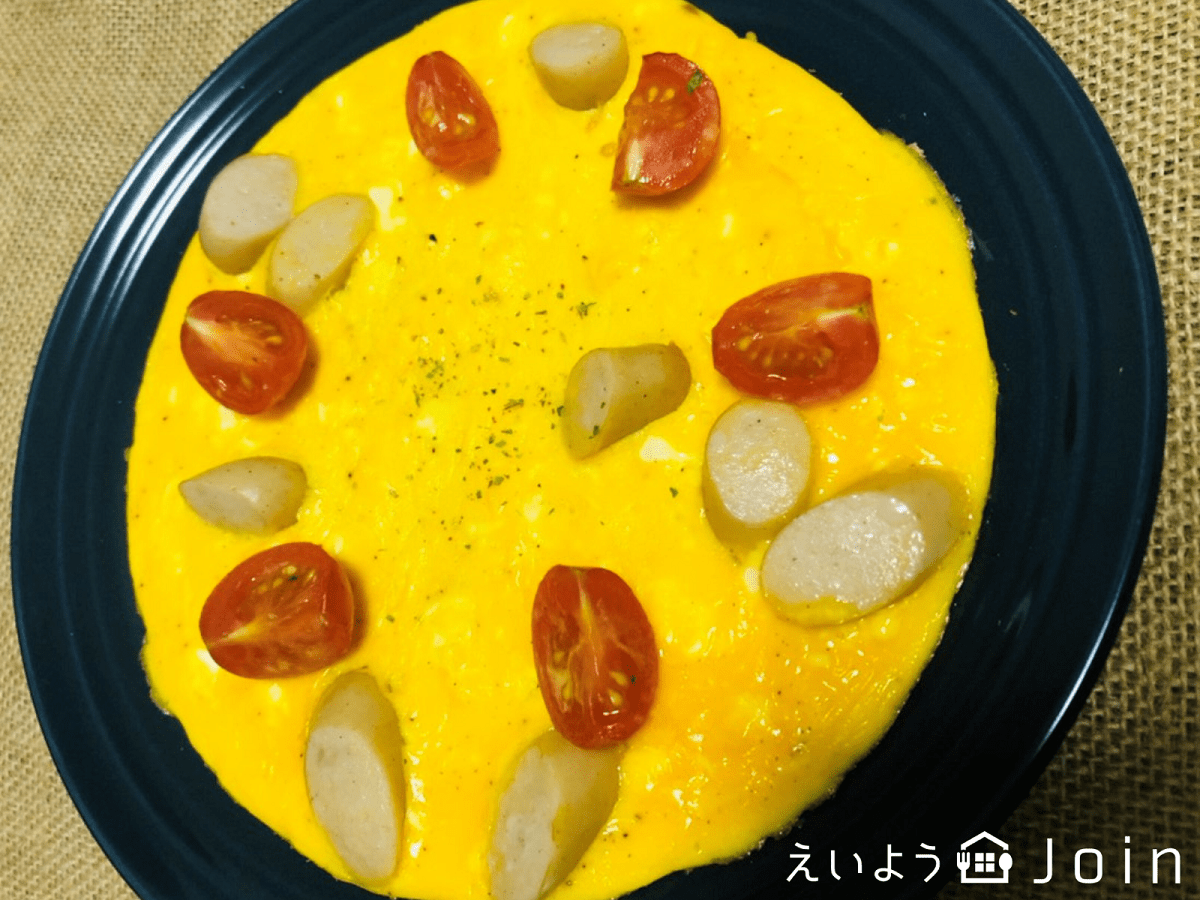 いつもの卵料理を少しだけアレンジ!弱火でじっくり焼くだけのフライパン一つでできるオープンオムレツです。卵の甘みに野菜ブイヨンの旨味も加わり、子どもから大人まで楽しめます。忙しい時の+1品としてもおすすめです!